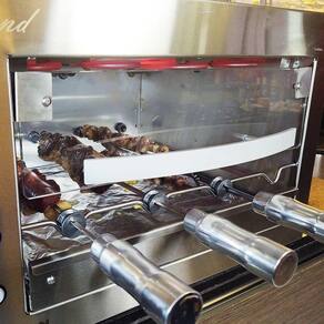 Churrasqueira elétrica de bancada com 4 espetos rotativos (3 simples e 1 triplo), porta de vidro temperado com sistema telescópico, bandeja coletora de gordura, grade interna de apoio. Estrutura em aço inox AISI 304 escovado. Luz piloto indicadora de funcionamento. Indicadores de temperatura: Desligado, Mínimo, Médio e Máximo. Espetos com cabo térmico em inox. Capacidade para até 6,8 kg de carne. Ideal para carnes, peixes, legumes e pizzas.Infelizmente não temos estoque do produto que você está procurando no momento.