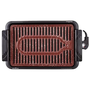 Prepare carnes, legumes, pães de alho e tudo o que você quiser com grande praticidade, dentro ou fora de casa, com a Churrasqueira Elétrica Britânia BCQ1300 Redstone 1200W. Conte com toda a eficiência do revestimento de cerâmica Redstone! Ele é mais durável, resistente e fácil de lavar, permitindo que os alimentos deslizem facilmente sem grudar. Além de ser livre de PFOA, PTFE e PFOS, ele é mais saudável e preserva o sabor e os nutrientes dos alimentos.São 1200W de potência que acelera o processo de preparo dos alimentos, reservatório para água e gordura, e base removível que facilita o manuseio do aparelho.Sem falar que a Churrasqueira Elétrica Britânia é ideal para preparar churrasco dentro de casa, pois tem baixa emissão de fumaça.