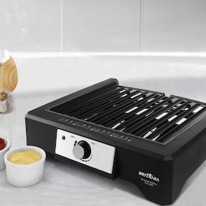 A Churrasqueira Elétrica Britânia BCQ2000 atinge altas temperaturas possibilitando o preparo de diversos alimentos em poucos minutos. Já o seletor de temperatura deixa a carne selada e no ponto que você deseja com menos fumaça. Os almoços de domingo estão garantidos!