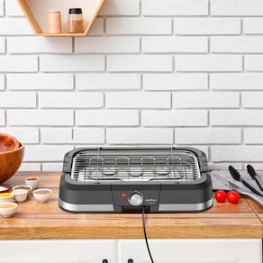 Bandeja coletora | Grelha removível | Luz indicadora de funcionamento | Termostável regulávelChurrasqueira Elétrica Britânia BCQ40 Preta - 220V