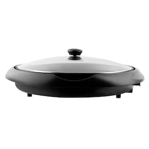 Ficha Técnica: • Modelo: BPE01 • Cor: Preto • Potência: 1200W • Capacidade: Chapa com 36cm de diâmetro • Tampa: Vidro temperado • Revestimento: Antiaderente • Funções: Grelhar, assar, tostar, gratinar e aquecer • Sistema de Inclinação: Sim, para escoamento de gordura • Coletor de Gordura: Capacidade de 60ml • Seletor de Temperatura: Removível, ajustável • Dimensão do Grill: 43cm (dimensão total) • Desligamento Automático: Não • Espátula ou Copo dosador: Não • Toque Frio: Não • Tipo: Panela elétrica