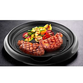 Características: • Versatilidade de uso: Grelha, assa, tosta, gratina e aquece com rapidez e praticidade. • Revestimento antiaderente: Facilita a limpeza e evita que os alimentos grudem na chapa. • Chapa ondulada: Ideal para grelhar alimentos de forma uniforme e saudável. • Sistema de inclinação: Permite o escoamento de gordura, garantindo uma refeição mais leve. • Coletor de gordura: Com capacidade de 60ml, para maior praticidade na limpeza. • Tampa de vidro temperado: Resistente, transparente e fácil de limpar. • Portátil e prático: Pode ser destacado da base aquecida e levado à mesa para servir.