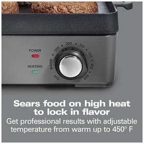 Prepare refeições deliciosas com a Grelha Elétrica de Ferro Fundido Hamilton Beach Professional. Com uma grande superfície de cozimento de 25 x 40cm e controle de temperatura ajustável até 232°C, esta grelha proporciona calor consistente para alimentos uniformemente dourados e cozidos. Suficientemente grande para refeições familiares, você pode grelhar bifes, hambúrgueres, frango, peixe, legumes e muito mais no café da manhã, almoço ou jantar. A superfície de ferro fundido permite selar os alimentos em alta temperatura, trancando o sabor. Fácil de limpar, com bandeja removível para recolher a gordura. Adquira já a sua e desfrute de refeições saborosas em família!