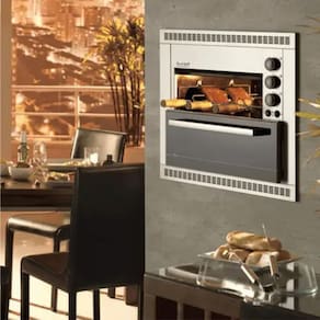 A churrasqueira Elétrica Fischer Ranch Grill pode ser instalada em bancada ou embutida em alvenaria e não produz fumaça. Seus espetos rotativos proporcionam um assado uniforme. Possui lâmpada interna e seu interior é esmaltado em easy clean.