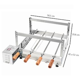 O Sistema de rotação de espetos permite assar de forma homogênea todos os tipos de carne. Seu alimento fica mais saboroso. O Aço Inox AISI 430 oferece beleza e durabilidade. O produto fica novo por muito mais tempo. Desmontável.