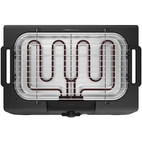 Churrasqueira eletrica griil menu grl810 220v Você pode fazer churrascos, petiscos, espetinhos, hambúrgueres ou grelhados com mais facilidade É indicada para quem tem pouco espaço em casa ou no apartamento, e pode ainda ser levada para qualquer lugar que tenha energia elétrica, como acampamentos e piqueniques com a família e os amigos. Muito potente 1800w (127v). Assa e grelha carnes, legumes e hambúrgueres de maneira rápida e prática. Termostato contínuo Níveis mínimo e máximo de temperatura podem ser controlados ao girar o botão. Temperatura mínima de 50ºc a 100ºc e máxima entre 210ºc a 250ºc. Guia rápido Fácil de usar já no primeiro churrasco, com indicação no produto do tempo para cada tipo de alimento. Novo design Traz maior praticidade no uso. Com alças laterais para transportar, também possui bandeja coletora de gordura, indicador do nível de água e ajuste de altura na grelha, para controlar melhor o preparo dos alimentos. Praticidade na limpeza, totalmente desmontável Tensão220v Potência2000w Consumo1,8kwh - 2,0kh Dimensões lxaxp500x365x90mm