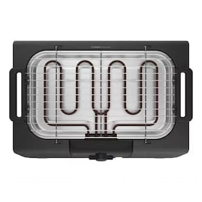 A churrasqueira tem uma potência de 1800W para assar e grelhar carnes, legumes e hambúrgueres de maneira rápida, mantendo o sabor dos alimentos, já que o grelhado sem carvão ressalta o verdadeiro sabor da carne. A temperatura pode ser ajustada de acordo com as receitas, com botão do nível mínimo ao máximo. Acompanha um guia rápido que indica o tempo para cada tipo de alimento.