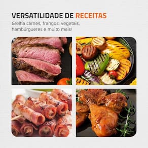 Tipo de preparo: Carnes, frangos, hambúrgueres, vegetais, pães e mais.
