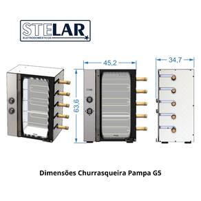 Dimensões internas: Largura: 34 cm x Altura 58 cm x Profundidade 26 cm. Tamanho dos Espetos: 35 cm de lâmina + 13 cm de cabo e Capacidade de 1,5Kg cada.