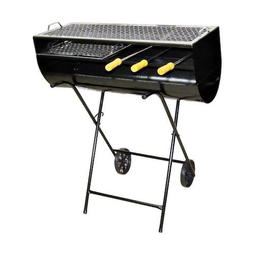 A churrasqueira é o principal utensílio culinário utilizado nos churrascos. É um tipo de fogão em que toda a superfície superior é uma grelha colocada sobre uma fonte de fogo aberto, que pode ser lenha, carvão vegetal (o mais comum). É ideal para assar frango, carnes, aves e peixes. Projetada para ambientes externos e internos como quintais, camping, áreas de piscina, praias, varandas entre outros. Leve, Prática para transportar, guardar e limpar. Carrinho com rodas para facilitar o transporte.