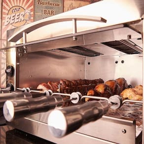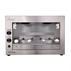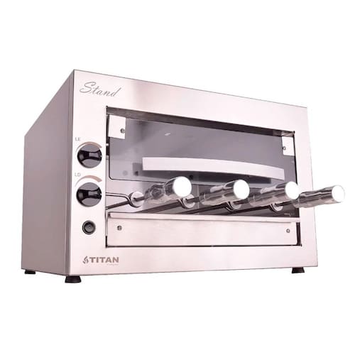 Churrasqueira forno a gás bancada 4 espetos stand Tipo de gás - voltagem: gás natural - 220v Versátil e prática, a churrasqueira a gás titan stand oferece assados sem fumaça e com alto desempenho. Conta com 4 espetos rotativos 3 simples e 1 triplo , queimadores infravermelhos, controle individual de chama, acendimento automático e estrutura em inox 304. Possui porta frontal de vidro temperado com abertura telescópica, bandeja coletora de gordura, grade interna e capacidade para até 6,8 kg de carne. Ideal para carnes, peixes, legumes e até pizzas. Atenção: escolha o tipo de gás correto Antes de finalizar a compra, verifique qual o tipo de gás disponível no seu imóvel: - glp gás de botijão ou cilindro : é o famoso gás de cozinha, vendido em botijões ex: p45 . Ideal para casas com abastecimento por botijão ou cilindro. - gn gás natural ou canalizado : conhecido como gás de rua, é fornecido por encanamento, comum em apartamentos e comércios. - escolher a versão errada pode causar falha na instalação e perda da . Em caso de dúvidas, consulte a nossa equipe antes de finalizar a compra. Desempenho e especificações: - queimadores infravermelhos: 2 unidades; - consumo de gás por queimador: 190 g/h; - consumo total de gás: 380 g/h; - tipo de gás: glp ou gás natural; - pressão de funcionamento: glp 2,8 a 3,5 kpa gás natural 2,2 kpa; - motorredutor elétrico: tensão 127v ou 220v, potência 28w; - giro do espeto: 6rpm; - consumo elétrico: 0,06 kw/h; - tensão: 127v ou 220v; escolher no momento da compra - frequência: 60hz; - espetos suportam 1,7 kg. Design e estrutura: - produto fabricado em inox 304 - porta frontal de vidro temperado com sistema telescópico; - estrutura externa em aço inox aisi 304 escovado; - estrutura interna em alumínio; - bandeja coletora de gordura em alumínio com frente de inox; - 04 espetos rotativos com cabo térmico - sendo 03 simples e 01 triplo; - controlador de queimador individual. Medidas: - dimensões do produto axlxp : 40 x 58 x 54 cm; - dimensões da embalagem axlxp : 53 x 68 x 68 cm; - peso líquido: 22,3 kg peso bruto: 26 kg. Acessórios inclusos: - bandeja coletora de gordura com frente de inox; - grade interna de apoio; - 4 espetos rotativos 3 simples e 1 triplo . Informações adicionais: As entregas são feitas em horário comercial e a montagem fica por conta do comprador. As imagens são meramente ilustrativas podendo apresentar itens que não compõe o produto. As cores do produto podem variar de acordo com o monitor ou percepção visual. Marca: Não Informado