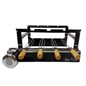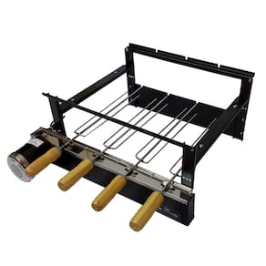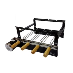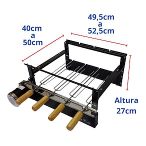Com estrutura toda em Ao Carbono, tem capacidade para acomodar 4 espetos giratrios, que giram simultaneamente.