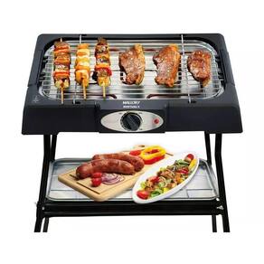 A Churrasqueira Elétrica Montana II da Mallory grelha carnes, hambúrgueres, frangos, linguiças e muito mais de maneira simples, rápida e saudável. É 2 em 1> portátil (mesa) ou com suporte de 82cm de altura, permitindo melhor posição para o preparo dos alimentos.
