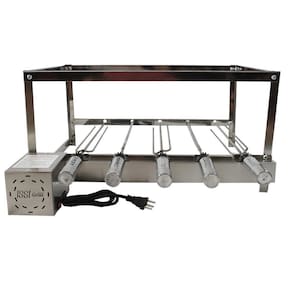 A linha de Grill Giratório Motor Fixo Issi Grill apresenta sua estrutura em chapa de aço inox 430 escovado com opção de 4,5,e 6 Espetos com kit elétrico rotativo Bivolt, ideal para churrasqueiras revestidas