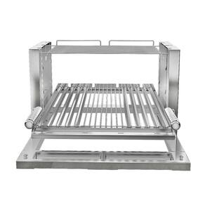 – modo argentino: grelha de canaletas inclinada e condução de gordura em reservatório no quadro da base.