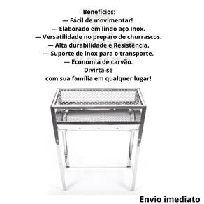 Além de todas essas vantagens, a Churrasqueira Inox Dobrável Portátil Pé e Grelha é muito econômica. Seu design inteligente permite o uso de menos carvão, garantindo uma economia significativa.