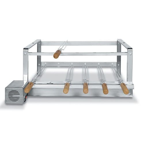 2. Apoio de Espeto Superior Multiponto: Oferecemos 17 posições diferentes para girar os espetos, permitindo a personalização do seu churrasco de acordo com suas preferências.