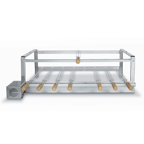2. Apoio de Espeto Superior Multiponto: Oferecemos 17 posições diferentes para girar os espetos, permitindo a personalização do seu churrasco de acordo com suas preferências.