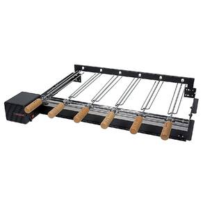 Desenvolvido sob medida para churrasqueiras pré-moldadas em aço inoxidável, este suporte inovador é equipado com seis espetos que executam uma rotação constante, proporcionada por um motor elétrico versátil compatível com tensões de 110V e 220V.