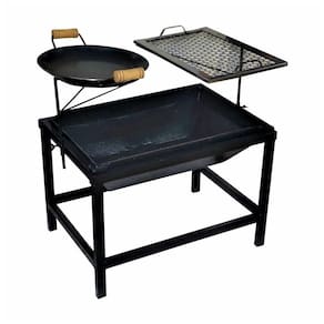 01 Lareira Churrasqueira a Lenha Retangular Chapa Aço Carbono 63x44x43cm.