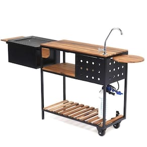 A B-Grill CP47 é a primeira churrasqueira do mercado com torneira móvel e sem nenhuma conexão hidráulica externa. É composta de uma estrutura em aço, com superfície de corte em madeira natural teca, torneira com acesso a tanque de reservatório de água limpa e outro tanque para água contaminada (descarga da pia). A churrasqueira é estilho parrilla com grelha removível, permitindo um excelente serviço de churrasco para até 20 pessoas. Possui ainda 2 rodízios industriais para fácil locomoção, e pode receber adaptação para rodas maiores de transporte em terreno muito macio (areia de praia por exemplo).