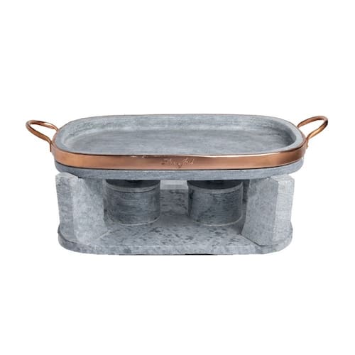Churrasqueira oval funda com grelha de carne e fogareiro duplo a álcool, ideal para preparar e servir carnes de forma prática e elegante. Permite grelhar carnes, linguiças, frangos e legumes uniformemente. O fogareiro a álcool mantém o calor constante. Utilizada para servir porções direto à mesa, em churrascos, reuniões, bares e restaurantes. Fácil de utilizar e limpar.Bica móvel