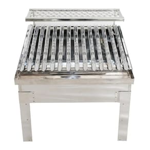 Churrasqueira: a churrasqueira parrilla é um modelo compacto, prático e portátil, podendo ser utilizado na área gourmet, na beira da piscina, no acampamento, no sítio, na varanda do apartamento ou onde preferir. Equipada com duas grelhas: a grelha principal no estilo argentina tem espaço para comportar as carnes e demais alimentos, dotada de uma canaleta para coletar a gordura; já a grelha superior é perfeita para descanso de carnes, auxiliando a finalizar o ponto dos cortes. Além disso, o material da churrasqueira é o aço inox, um tipo de aço resistente a abrasão e oxidação, ou seja, não enferruja. Por esse e outros motivos, o inox se torna um excelente material para a sua churrasqueira, que além de bonito, é eficaz.