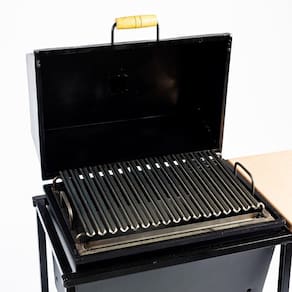 Construída com precisão, o material de Chapa 14 (2mm espessura) de Aço Carbono para o corpo da churrasqueira e a tampa em Chapa 16 (1,6 mm espessura) garantem resistência excepcional. O acabamento em pintura simples, alças robustas e prateleira inferior não apenas proporcionam um visual elegante, mas também oferecem funcionalidades essenciais para otimizar o seu espaço de preparo.