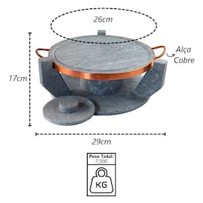 Vantagens: Retenção de Calor: Mantém e distribui calor uniformemente. Durabilidade: Resistente e duradoura. Fácil Manutenção: Superfície fácil de limpar. Versatilidade: Cozinha vários tipos de alimentos. Estética: Aparência robusta e elegante. Saúde: Material natural que não libera toxinas.