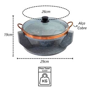Vantagens: Retenção de Calor: Mantém e distribui calor uniformemente. Durabilidade: Resistente e duradoura. Fácil Manutenção: Superfície fácil de limpar. Versatilidade: Cozinha vários tipos de alimentos. Estética: Aparência robusta e elegante. Saúde: Material natural que não libera toxinas.