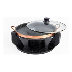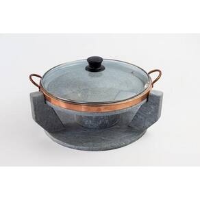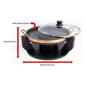 Rechaud / base - altura: 15 cm - diâmetro: 29 cm - peso: 4,350 kg - capacidade do reservatório: 400 ml - material: pedra sabão
