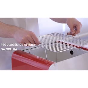 Desenvolvida com grelha móvel com 2 ajustes de altura e cinta que envolve o produto, permite que você mantenha facas, garfos e outros utensílios necessários para os churrascos junto a churrasqueira! Além é claro de oferecer muita praticidade ao transportar o produto.