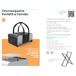 Churrasqueira portátil, ideal para churrascos, piqueniques e atividades ao ar livre;