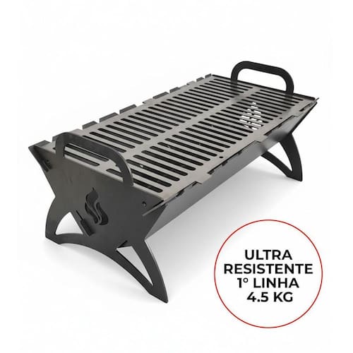 Churrasqueira Portátil Aço Carbono Grelha Inox Desmontável