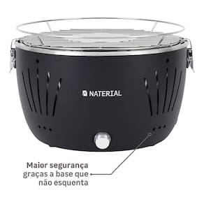 Churrasqueira portátil a carvão com design compacto e moderno. Estrutura robusta para durabilidade e segurança. Montagem rápida e intuitiva. Sistema de ventilação eficiente para queima uniforme do carvão. Grelha de qualidade superior resistente e fácil de limpar. Ideal para varandas, acampamentos e piqueniques.Vendido por Home Living e entregue por Extra
