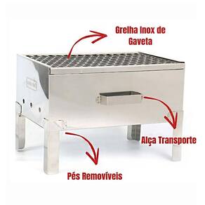 Churrasqueira Portátil de Inox 430 Leve 40cm + Grelha Inox DESCRIÇÃO: Churrasqueira para toda vida, sua chapa INOX 430 de 0,6mm proporciona uma incrível firmeza e resistência, capaz de suportar grandes mudanças de temperatura, é uma de durabilidade para sua churrasqueira. Cozinhe com prazer essa churrasqueira será sua aliada para entreter a seus convidados e receber todos os aplausos, com ela você poderá preparar os melhores cortes de maneira prática e confortável. Fácil de transportar, leve a com você para qualquer lugar na sua pescaria, camping, praia etc. Dimensões da Churrasqueira: Largura Útil 40 cm Profundidade 27 cm Altura 33 cm Chapa AÇO INOX - 0,6mm Acompanha grelha moeda de Inox Com alça de Inox para fácil e rápido transporte Marca: Não Informado