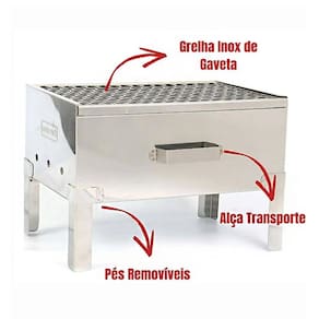 Churrasqueira Portátil de Inox 430 Leve 40cm + Grelha Inox DESCRIÇÃO: Churrasqueira para toda vida, sua chapa INOX 430 de 0,6mm proporciona uma incrível firmeza e resistência, capaz de suportar grandes mudanças de temperatura, é uma de durabilidade para sua churrasqueira. Cozinhe com prazer essa churrasqueira será sua aliada para entreter a seus convidados e receber todos os aplausos, com ela você poderá preparar os melhores cortes de maneira prática e confortável. Fácil de transportar, leve a com você para qualquer lugar na sua pescaria, camping, praia etc. Dimensões da Churrasqueira: Largura Útil 40 cm Profundidade 27 cm Altura 33 cm Chapa AÇO INOX - 0,6mm Acompanha grelha moeda de Inox Com alça de Inox para fácil e rápido transporte Marca: Não Informado Ean: 7895712013928