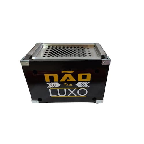 Churrasqueira portatil personalizada não tem luxo ,camping praia DescriçãoChurrasqueira:- altura = 31cm- comprimento = 44cm- largura = 29cm- peso: 4,5kgGrelha:- comprimento = 35,5cm- largura = 20cm Material- caixa externa em chapa de aço galvanizado- tanque interno em inox- grelha em inox- pintura eletrostática a pó (não solta a estampa com o calor)- possui alças para carregar