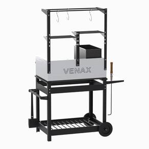 Tipo: Churrasqueira portátil Marca: Venax Revestimento externo da churrasqueira: Inox 304 Revestimento interno da churrasqueira: Aço esmaltado com base em tijolo refratário Tipo de braseiro (Fire Box): Fechado e móvel, pode ser utilizado nos 2 lados Material braseiro (Fire Box): Aço carbono revestido com esmalte vítreo Grelha: Estilo Argentina esmaltada Coletor de gordura: Aço esmaltado Varal de carnes e legumes: Duplo removível, com pintura epóxi Ganchos: Inox 304 maciço Grelha de apoio: Arame liso esmaltado. Descanso: Lateral em chapa Inox 304 Suporte para lenha: Revestido em pintura epóxi Dimensões da grelha principal (C x L): 50,7cm x 46cm Dimensões braseiro (Fire Box) (C x L x A): 21,5cm x 46cm x 25cm Medidas do produto: Altura 171cm - Largura 123cm - Profundidade 84cm