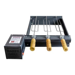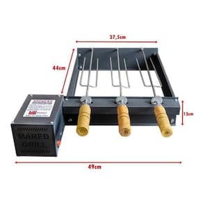 Churrasqueira Rebaixada Preta Grill 3 Espetos EsquerdoMotor WEG. O que há de melhor no mercado. Frequência: 60hz. Potência: 1/30 HP. 1550rpm com redução. Cabo de energia: 1,20mts. Espetos giram nos sentidos opostos, evitando interferência entre ambos. Para girar: Energia Elétrica - BIVOLT (chave seletora - selecionar 110v ou 220v antes do uso). Para assar a carne: Carvão. Fabricadas com fino acabamento na chapa de aço reforçado. Pintura eletrostática à pó resistente à temperatura e ferrugem. Preta com cabos de madeira, design e sofisticação na medida certa. Cabos dos espetos em madeira para evitar altas temperaturas no manuseio. Espetos em inox linha 200 (o que há de melhor e mais seguro no mercado). Fácil montagem. Fácil limpeza. Motores do lado esquerdo (olhando de frente) - padrão. Motores do lado direito (olhando de frente) - consulte seu lojista. Modelo rebaixado não acompanha descanso superior. No geral as churrasqueiras possuem capacidade de servir um churrasco de 15 à 50 pessoas, dependendo do seu tamanho, da carne e do churrasqueiro. As churrasqueiras Mared contam com dispositivo de segurança para evitar queima caso sejam ligadas na voltagem errada. Podem ser utilizadas em modelos de alvenaria ou pré moldadas, de acordo com suas medidas. Fabricante: Mared Indústria.