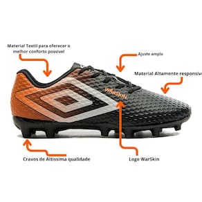 Além disso, a Umbro Warskin também incorpora tecnologia de amortecimento para reduzir o impacto nas articulações e fornecer conforto ao longo de toda a partida. A palmilha acolchoada proporciona suporte adicional aos pés, contribuindo para um conforto duradouro.