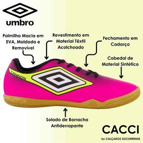 Chuteira Futsal Laminada Fluorescente Durável Umbro Cannon - 41 - Rosa