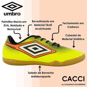 Chuteira Futsal Laminada Fluorescente Durável Umbro Cannon - Verde Limão - 39