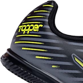 Chuteira Topper Brave foi desenvolvida para aqueles que buscam o melhor desempenho e controle nas quadras. Com cabedal em material sintético, possui calcanhar acolchoado, que oferece maior proteção e conforto. O solado é feito em borracha, com pequenas travas que permitem maior aderência ao piso. Possui palmilha removível em EVA, que facilita a higienização do calçado.