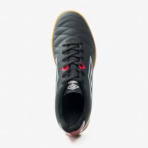 O cabedal é construído em material laminado com aplique de alta-frequência, detalhe diferenciado no Diamante Umbro e costura programada na parte frontal, preservando esse detalhe clássico e combinando com serigrafia e detalhe de textura gráfica. Solado de futebol indoor construído em borracha.