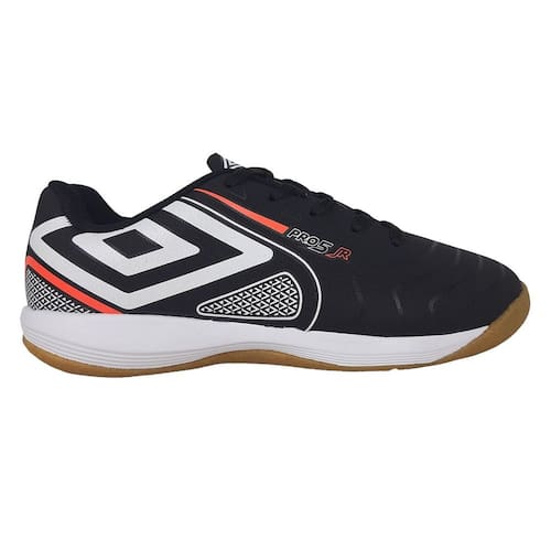 A Chuteira Futsal Umbro Pro 5 Jr Infantil é para os pequenos craques arrasarem nas quadras com qualidade e conforto. O cabedal é construído em material laminado emborrachado com grafismo personalizado, sistema de lingueta convencional e o autêntico Diamante Umbro aplicado em serigrafia na lateral. O solado de possui entressola super macia em EVA de ponta a ponta com soleta em borracha, que proporciona maior durabilidade e aderência ao solo.