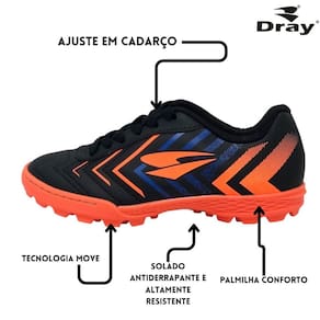 Com as chuteiras Dray com Tecnologia MOVE e Costura Frontal, você estará pronto para dominar o campo, com controle aprimorado e movimentação ágil que fazem a diferença no seu jogo. Escolha a qualidade e o estilo da Dray para elevar seu desempenho no futebol.