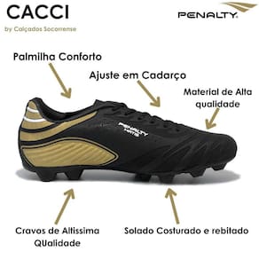 A Chuteira Campo Penalty Matis Y-2 conta com caneletas posicionadas estrategicamente para auxiliar na flexão e movimentação dos pés.