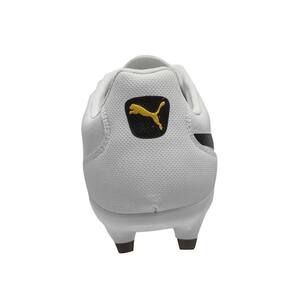 Descrição: Passe a ser o rei dos gramados com a Chuteira Campo Puma King FG BDP. Seu cabedal de qualidade produzido em couro é durável e confortável. O produto possui fechamento por cadarço, auxiliando o ajuste aos pés. A palmilha removível é ideal para a higienização. Solado em TPU com travas posicionadas estrategicamente para mais tração e força nos gramados. Design elegante em uma vibe clássica na cor predominante preta e a icônica faixa Formstrip em branco. Detalhes da marca em dourado.