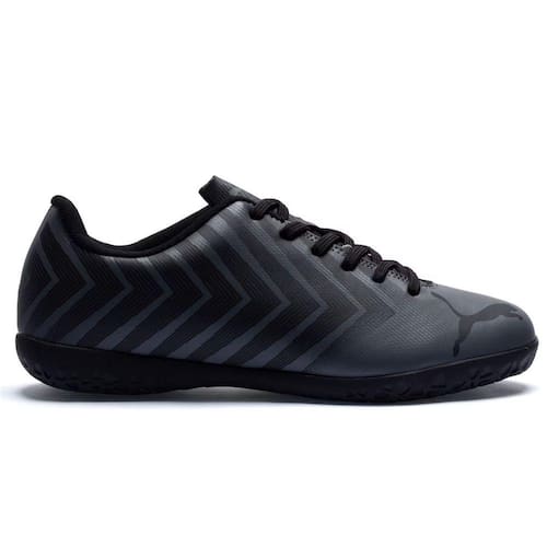 O cabedal (parte superior do calçado) da chuteira futsal Puma é em material sintético, amarração em cadarço, palmilha macia e removível, lingueta fina e flexível e forro com reforço acolchoado.